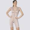 Prenda de compresión para el cuerpo de media pierna con mangas y sujetador (copas expansibles que se adaptan a su talla), con cierre frontal con broches ajustables. Entrepierna abierta (le permite usar su propia ropa interior). Esta prenda tiene una doble capa en el área abdominal clave para garantizar la máxima sujeción y comodidad y cuenta también con cierres con broches en dos niveles para que pueda ajustar la prenda conforme se vaya reduciendo la hinchazón. Además, tiene todas las costuras hacia fuera para evitar cualquier contacto con las zonas de la incisión.